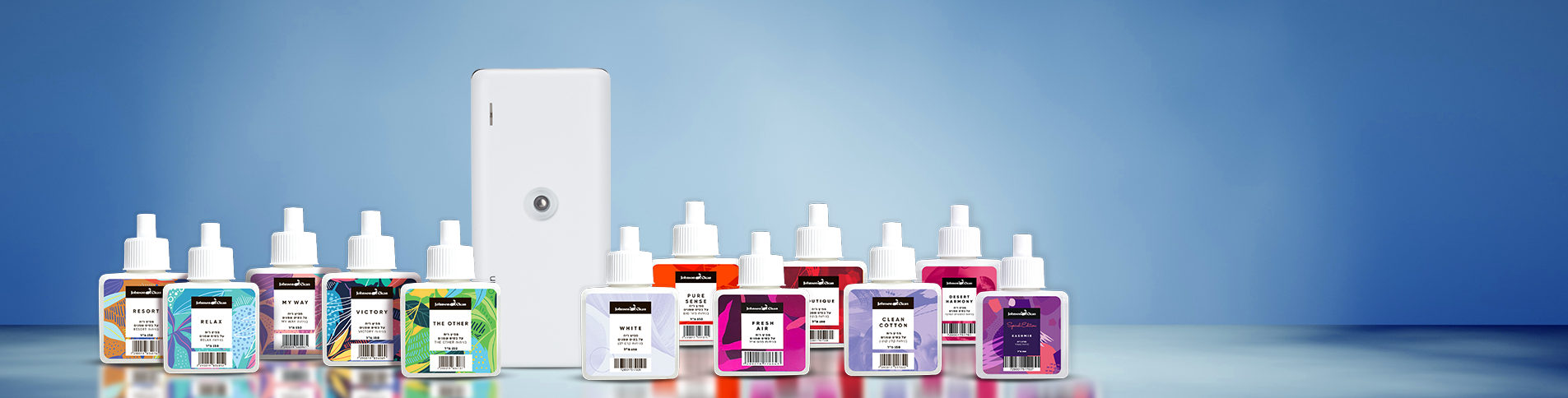 ג׳ונסון קלין מציעה סוגים שונים של מפיצי ריח לבחירתכם עם מגוון ענק של ניחוחות עשירים בטכנולוגיות לטיהור ובישום הבית באופן אחיד - עם ניחוחות כאלו כיף להיות בבית ובמשרד