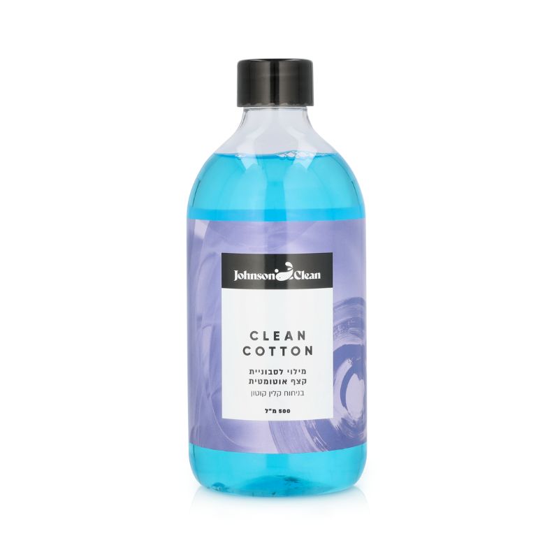 תשובה: המילוי מכיל 500 מ"ל וניתן למילוי חוזר באמצעות סבון קצף ייעודי בלבד.